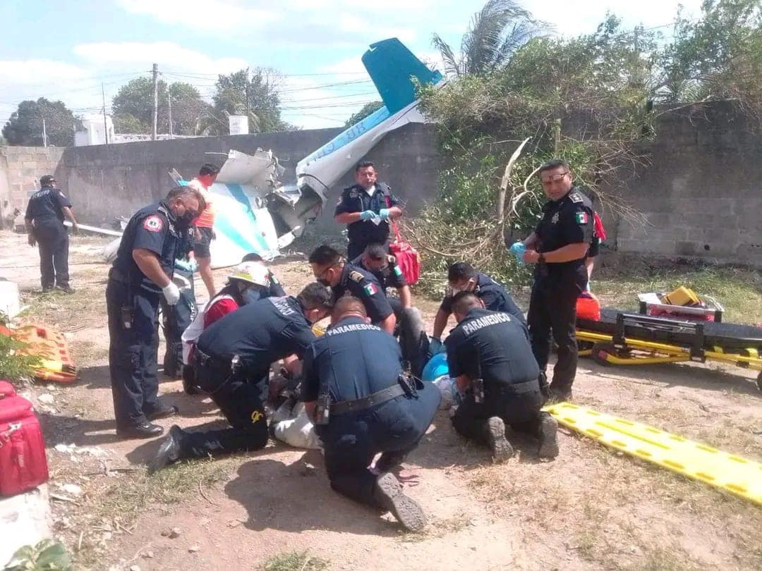 Se desploma una avioneta en las calles de Mérida; reportan a dos lesionados graves