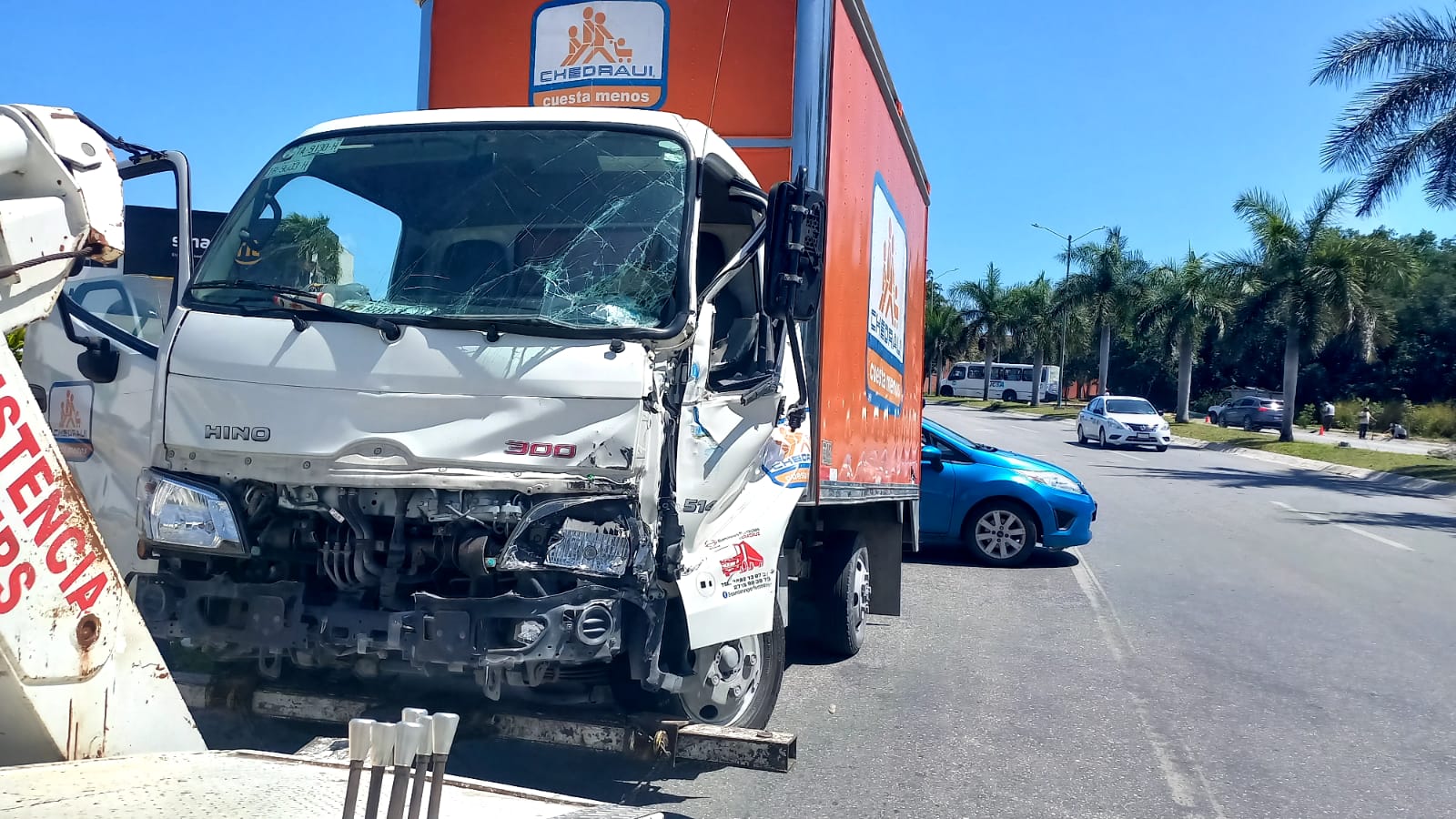 Los hechos ocurrieron alrededor de las 5:30 de la tarde de ayer cuando el conductor de una unidad Hino 300 de la empresa Chedraui, trataba de ingresar al estacionamiento de la plaza ubicada en la avenida Paseo central entre avenida 115 y Chemuyil.