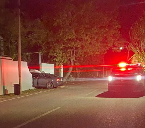 PLAYA DEL CARMEN, Quintana Roo 08 de junio de 2025.- Vecinos de la colonia Ejido vivieron momentos de tensión la madrugada de este sábado, luego de que un vehículo se impactara contra la barda perimetral de una vivienda ubicada sobre la calle 5 Sur, con avenida 65, destruyéndola por completo. El percance ocurrió alrededor de la 1:00 a.m., en una zona poco transitada, lo que alertó aún más a los residentes tras escuchar un fuerte estruendo.