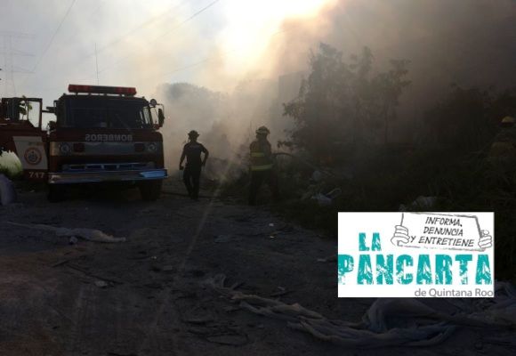 PLAYA DEL CARMEN, Quintana Roo, 28 de febrero.- La tarde de este miércoles se registro el incendio de un basurero clandestino localizado en la colonia Fundadores, a espaladas de la funeraria San José, elementos del Cuerpo de Bomberos de Solidaridad, arribaron al lugar, los primeros reportes de emergencia señalaban que el fuego inició en una supuesta bodega, sin embargo minutos después se confirmo la ubicación del incendio que rápidamente se extendió con el viento, afortunadamente no se registraron personas lesionadas.