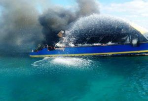 CANCÚN, Quintana Roo, 25 de Enero.- Una embarcación de la empresa Ultramar se incendió esta mañana en el muelle de Playa Tortugas, ubicado en el km 6.5 de la zona hotelera.