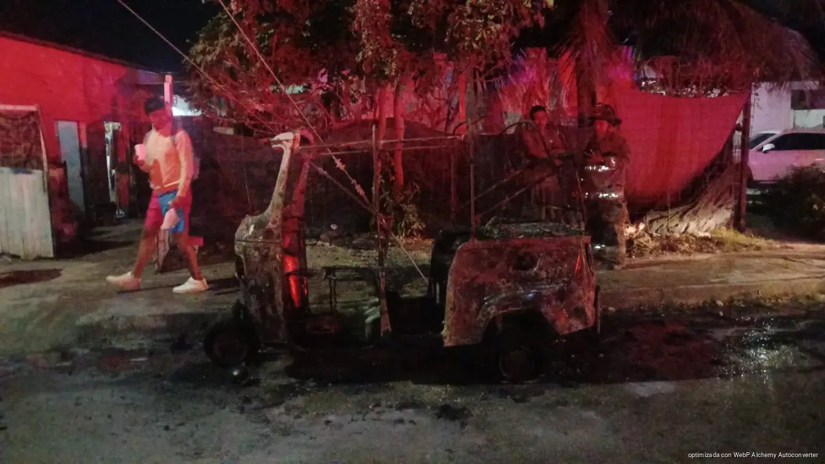 El siniestro fue reportado alrededor de las 21:00 horas por vecinos del fraccionamiento Villas Otoch, quienes alertaron al número de emergencias 911 sobre un mototaxi en llamas sobre la calle 34, a un costado del Instituto Municipal de la Mujer.