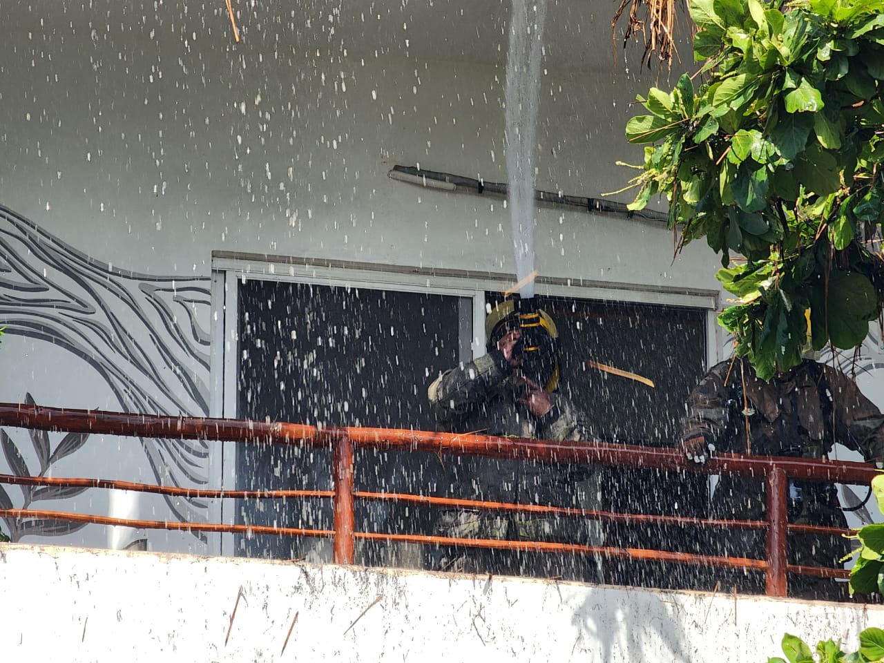 En cuestión de minutos, los elementos de emergencia lograron controlar y sofocar las llamas, evitando que se extendieran a otras áreas del edificio, donde también se encuentra el restaurante DelCielo Bistro Tropical.