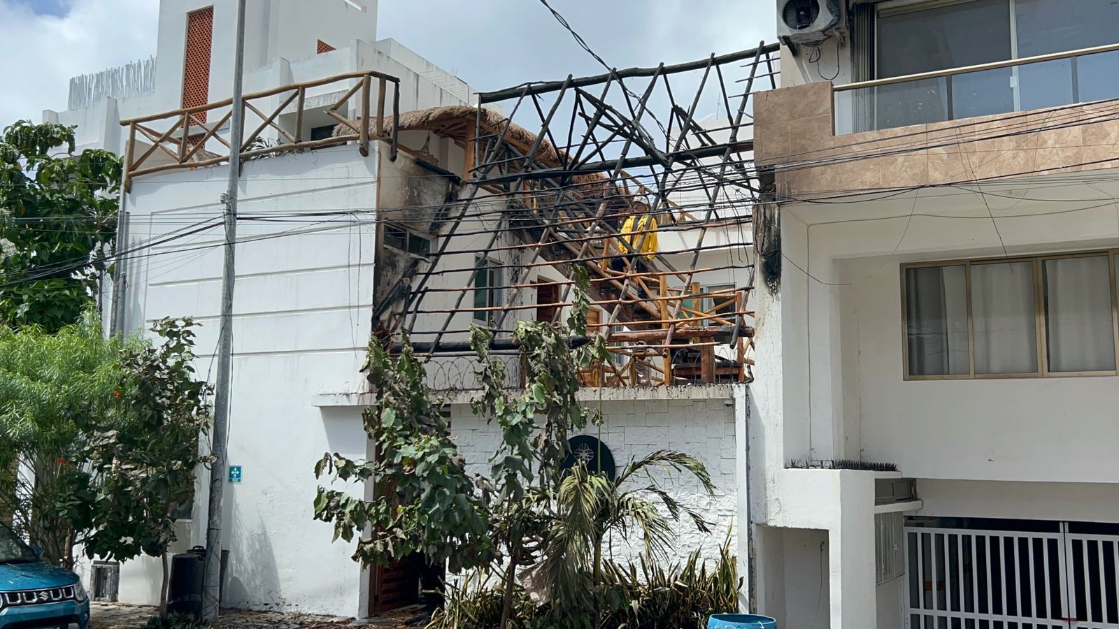 PLAYA DEL CARMEN, Quintana Roo, 18 de Mayo del 2024.- La mañana de este sábado un corto circuito provocó el incendio de una palapa, en un edificio ubicado sobre la avenida 38 con calle 10, en la zona turística de Playa del Carmen.