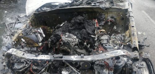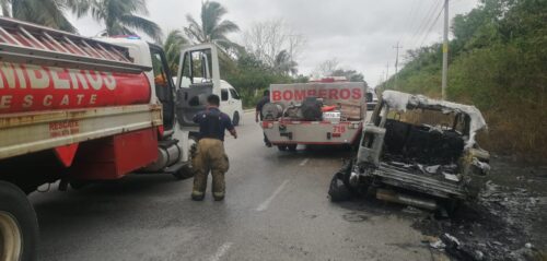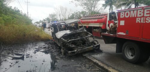 PLAYA DEL CARMEN, Quintana Roo, 22 de mayo.- Una camioneta particular fue consumida en su totalidad por el fuego sobre la carretera federal 307, altura del hotel Blue Bay, no hubo n lesionados solamente pérdida total del vehículo.