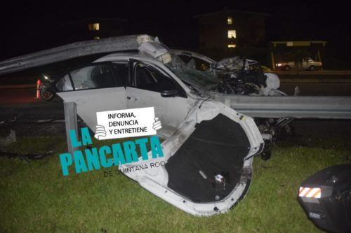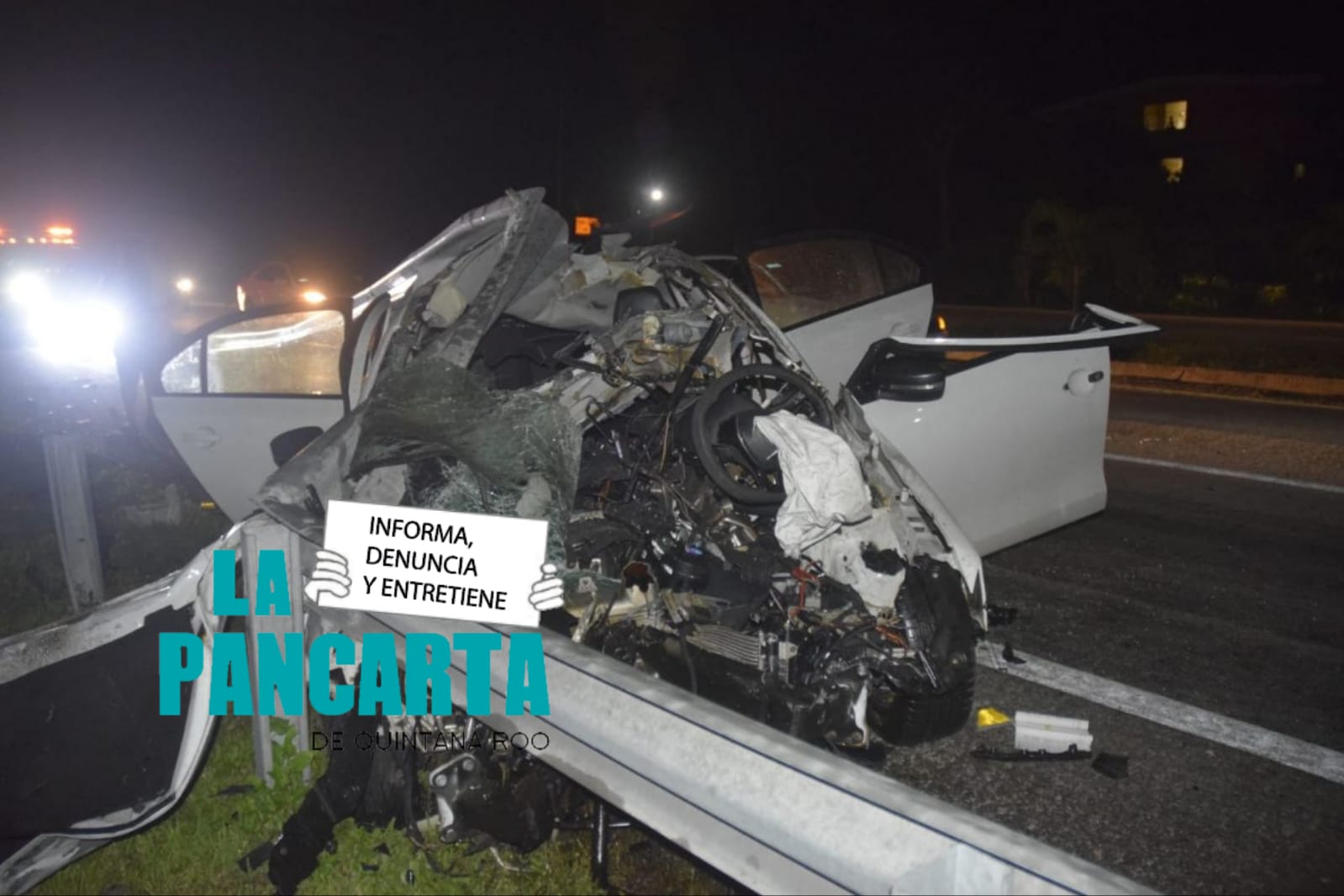 PLAYA DEL CARMEN, Quintana Roo, 19 de junio.- Un fuerte accidente se registró durante la madrugada sobre la carretera federal 307 a la altura del hotel Palladium. Donde una pareja que viajaba a bordo de un vehículo particular quedó gravemente lesionada.
