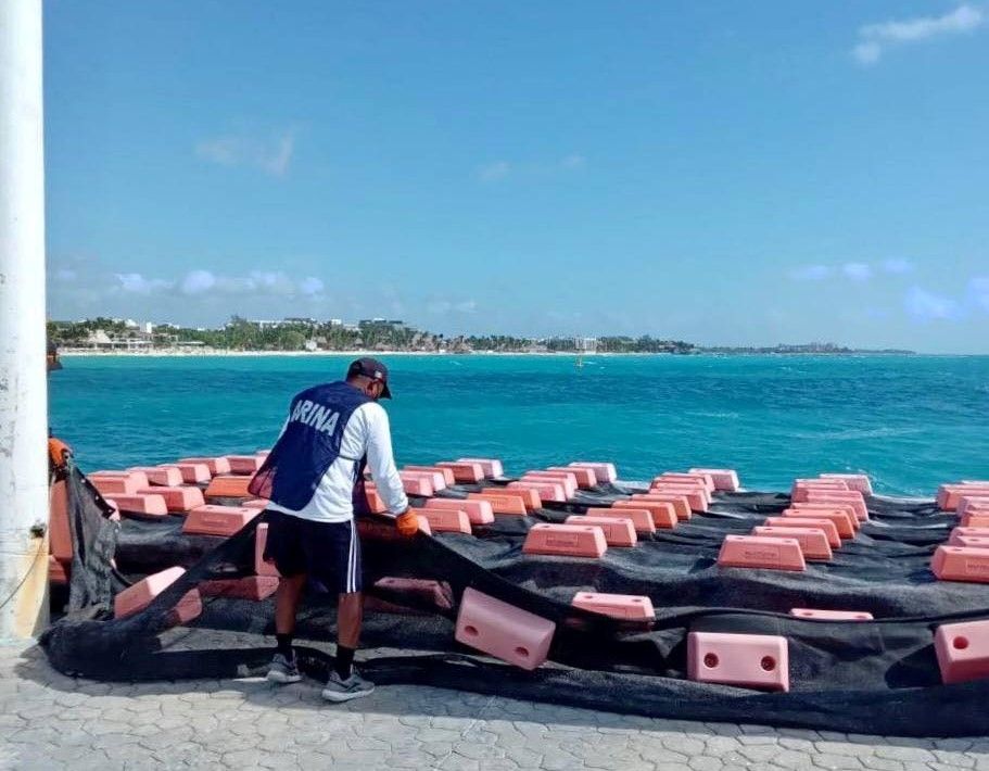 “Tenemos poco recale, pero en cuanto pasen los días y nos acerquemos al mes de abril va ir incrementando el volumen del sargazo. Nosotros bajamos hace 10 días las barreras como te decía con la finalidad de ya iniciar el anclaje terminaron de anclar en 340 puntos de anclaje y la próxima semana se empieza a instalar la barrera de lado sur hacia al norte”.