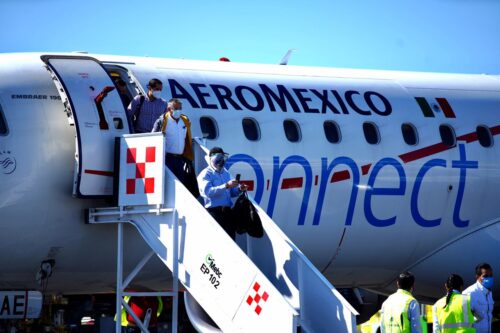En el aeropuerto internacional de esta ciudad, el titular del Ejecutivo dio la bienvenida a este primer vuelo, que llegó con el 84 por ciento de ocupación, acompañado por Giancarlo Mulinelli, vicepresidente senior de Ventas Globales de Aeroméxico.