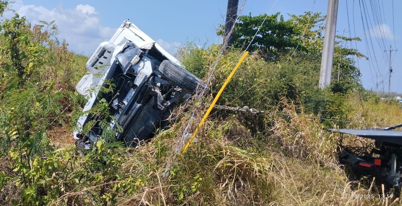 Playa del Carmen, Q. Roo.— Un conductor se llevó un gran susto la tarde de este martes, luego de quedarse dormido al volante mientras circulaba sobre la carretera federal 307, provocando que su camioneta saliera del camino y volcara entre la maleza, a la altura de Punta Maroma.