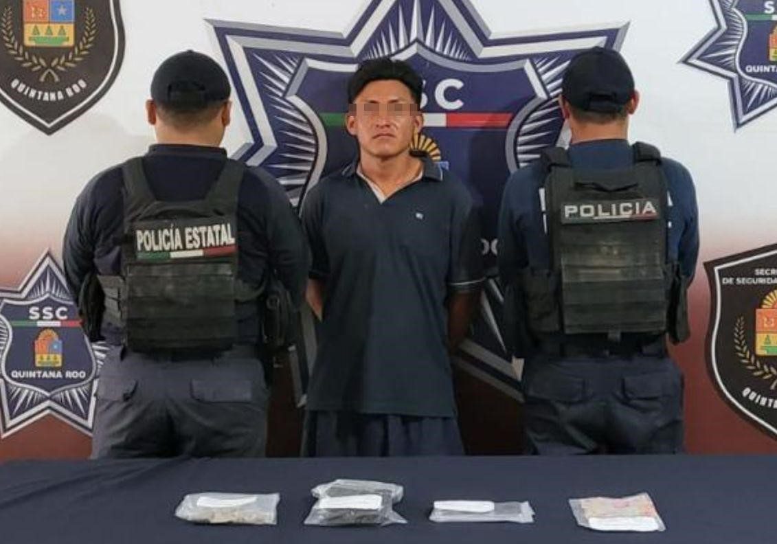CANCÚN, Quintana Roo, 10 de abril de 2025.- Un presunto narcomenudista fue detenido por elementos de la Policía Estatal en la supermanzana 203, por lo que fue puesto a disposición del Ministerio Público, con diversas dosis de hierba seca.