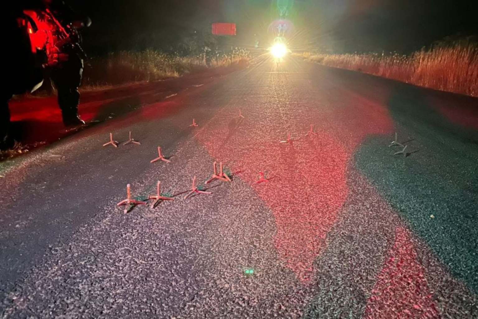 Cuando reanudaron su vigilancia por la carretera que conduce Teocaltiche a Jalostotitlán, individuos esparcieron en el camino varios objetos metálicos conocidos como ponchallantas. Una de las unidades resultó con daños, por lo que los oficiales retiraron estos objetos para evitar algún percance con los automovilistas.