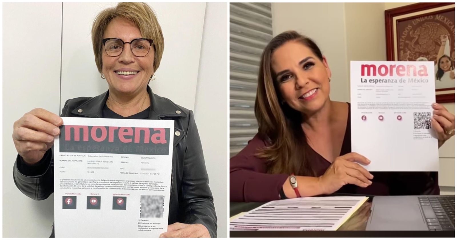 CANCÚN, Quintana Roo, 12 de noviembre. – Mara Lezama Espinosa, alcaldesa de Benito Juárez (Cancún), y la ex alcaldesa de Solidaridad, Laura Beristain Navarrete (ahora regidora) anunciaron su registro como aspirantes a precandidatas de Morena, para la gubernatura de Quintana Roo en 2022.