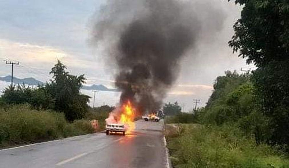 La zona de Tierra Caliente en Michoacán amaneció este domingo con múltiples bloqueos e incendio de vehículos sobre la carretera Apatzingán-Aguililla.