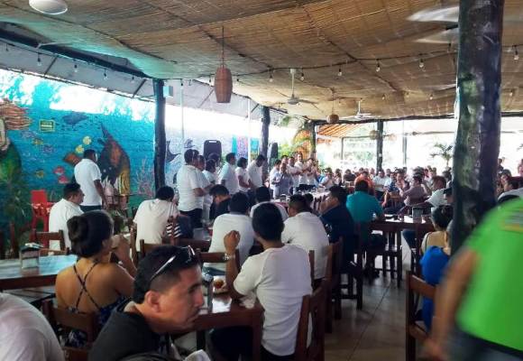 PLAYA DEL CARMEN, SOLIDARIDAD.- 11 de junio.- La candidata a la presidencia municipal por Solidaridad de la coalición PAN-PRD María Cristina Torres Gómez, sostuvo una reunión con la Sociedad Cooperativa Multiservicios “In Lak´ Loom en un conocido restaurante de la ciudad, donde ratificó su apoyo con los miembros de esta agrupación quienes buscan tener una concesión propia y de esta manera poder tener el sustento diario para sus familias, y no depender de un sindicato que no entrega cuentas y da prioridad a sus compromisos con políticos.