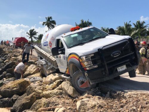 Los hechos se registraron a la altura de la zona denominada Punta Piedra, ubicada en el kilómetro 5 del tramo de la zona hotelera de Tulum, cuando el conductor de la unidad de gas, intentó evitar un bache y a la vez un vehículo que venía sobre él, y durante el volantazo, este se orilló demasiado y se salió de la cintas asfáltica.