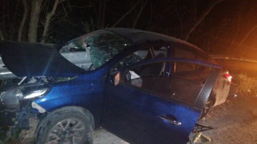 PLAYA DEL CARMEN, Quintana Roo, 07 de mayo.- Durante la madrugada el conductor de un vehículo particular Nissan Versa sin placas color azul, perdió el control al volante sobre el Boulevard playa del Carmen, a la altura del parque Xcaret y chocó de frente contra la BARRERA DE CONTENCIÓN, la cual atravesó el vehículo.