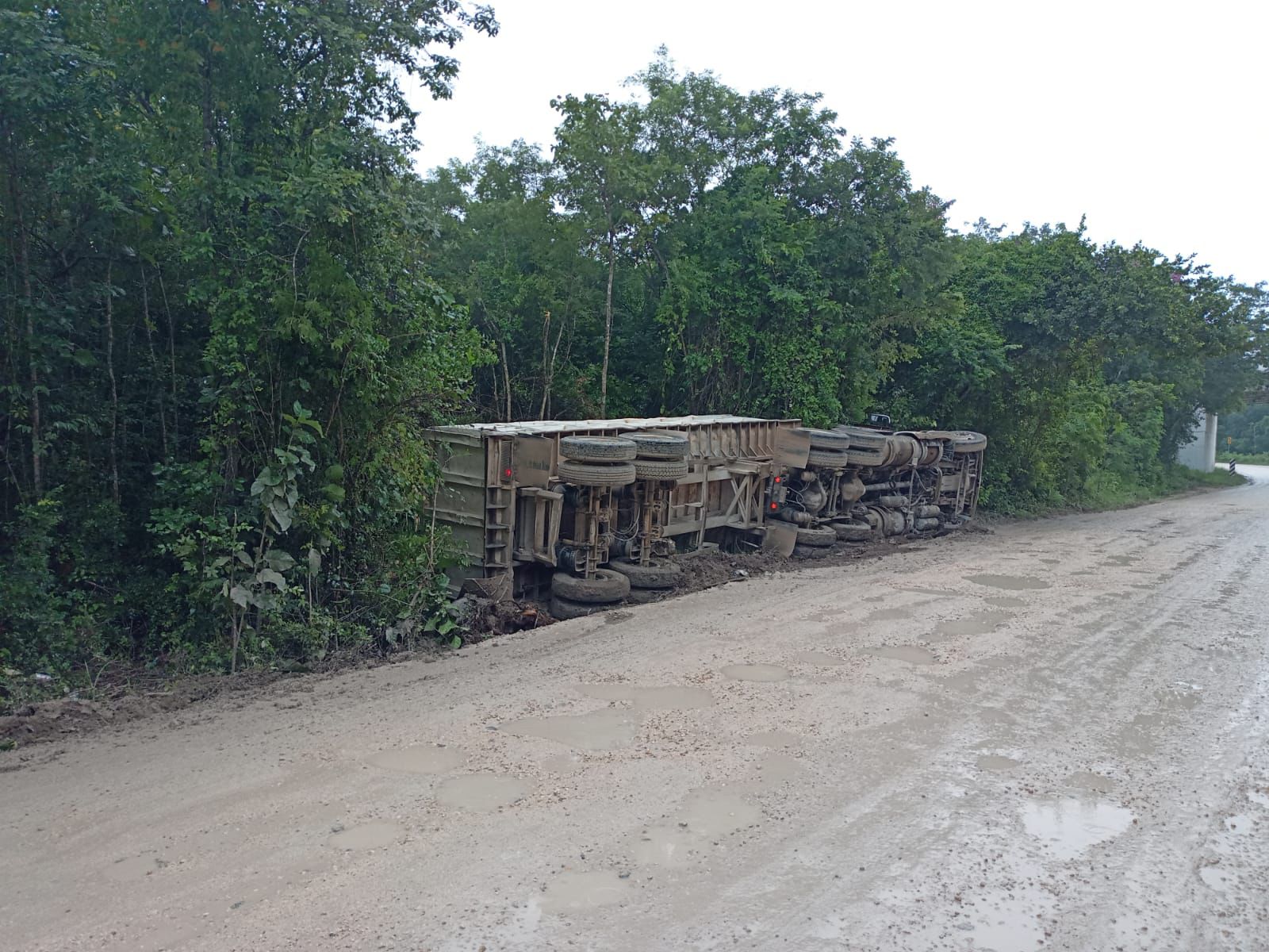El incidente ocurrió a la entrada de Cancún y, de acuerdo con los reportes, las malas condiciones de la carretera y el mal tiempo contribuyeron al percance, que afortunadamente no dejó personas heridas.