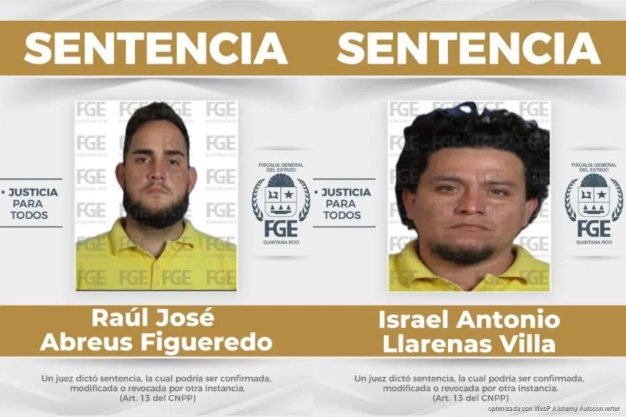 Benito Juárez, Quintana Roo, 3 de febrero de 2026.– En audiencia de juicio oral, la Fiscalía General del Estado obtuvo sentencia condenatoria, con pena privativa de la libertad de 37 años y seis meses, para Israel Antonio Llarenas Villa y Raúl José Abreus Figueredo, por el delito de homicidio calificado, cometido en agravio de un servidor público, en este municipio.