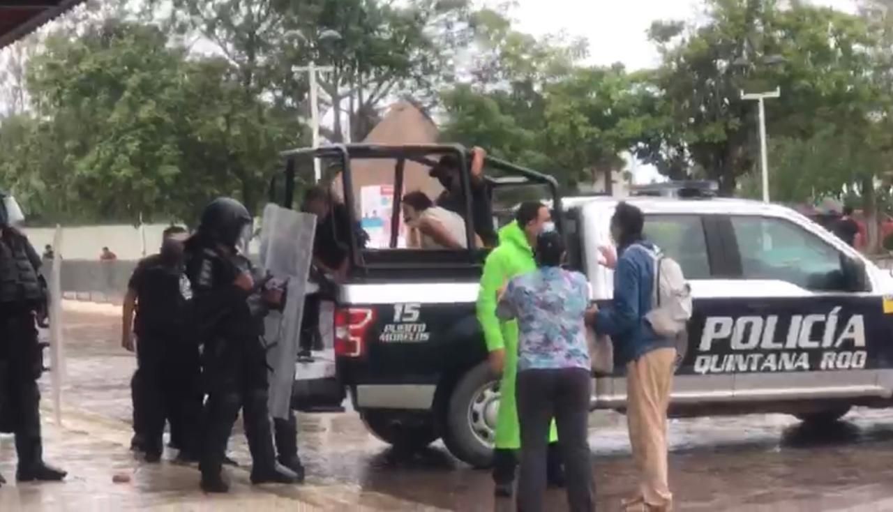 Por último, comentó que la Policía Quintana Roo de Puerto Morelos acudió al parque del Casco Antiguo en atención a una solicitud de apoyo de los directivos encargados de la obra de remodelación, que temían por la integridad física de un grupo de manifestantes que estaban dentro de una zona en la que se trabaja con maquinaria pesada. Agencias