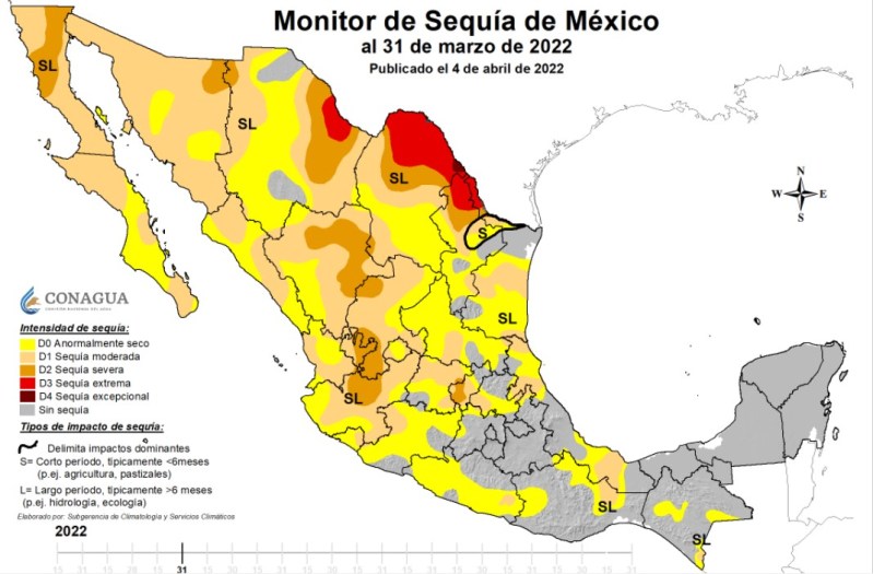 La Conagua precisa también que Campeche, Ciudad de México, Morelos, Quintana Roo, Tabasco, Tlaxcala y Yucatán son los únicos estados sin afectación por sequía.