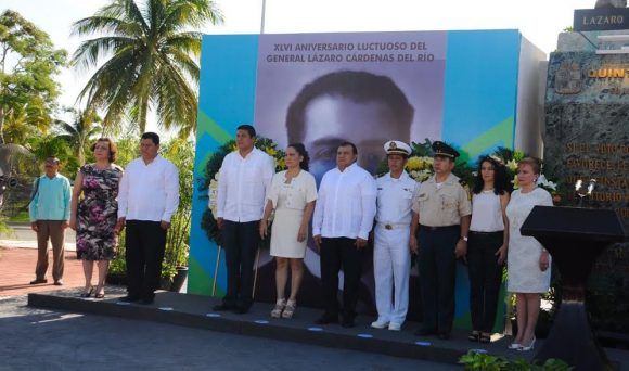 CHETUMAL, Quintana Roo, 19 de octubre.- En representación del gobernador Carlos Joaquín González, la secretaria de Educación y Cultura, Marisol Alamilla Betancourt, encabezó la ceremonia conmemorativa del XLVI aniversario luctuoso del general Lázaro Cárdenas, ante la estatua erigida en su honor.