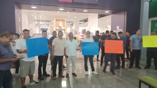 Los empleados inconformes, mostraron pancartas donde se leían exigencias como “sí a la revisión del contrato”, “Que garanticen las comisiones y salarios justos” y “pago de bono anual”, entre otros.