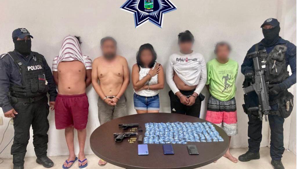 Tulum, 2 junio del 2022.- Cinco personas armadas y en posesión de 200 dosis de presunta droga fueron detenidas durante la madrugada de ayer en la colonia irregular 2 de octubre en Tulum, como resultado de un operativo entre fuerzas de los tres niveles de gobierno que encabezó la policía municipal.