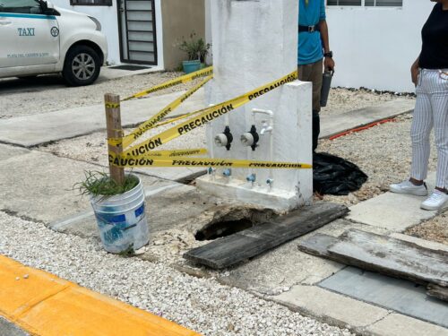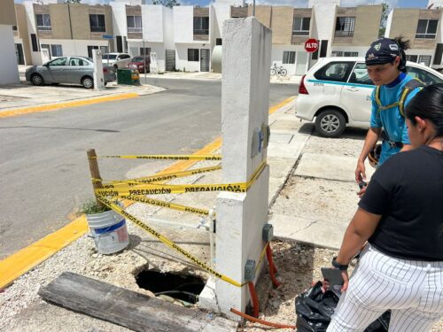 Playa del Carmen, Q. Roo.— Un socavón de aproximadamente tres metros de profundidad y siete metros de largo se formó en el fraccionamiento Porto Alto, dejando al descubierto una caverna natural bajo la calle Playa de los Cabos. El incidente ha puesto en evidencia no solo las condiciones geológicas de la zona, sino también los posibles vicios ocultos en la construcción por parte de la desarrolladora Javer.