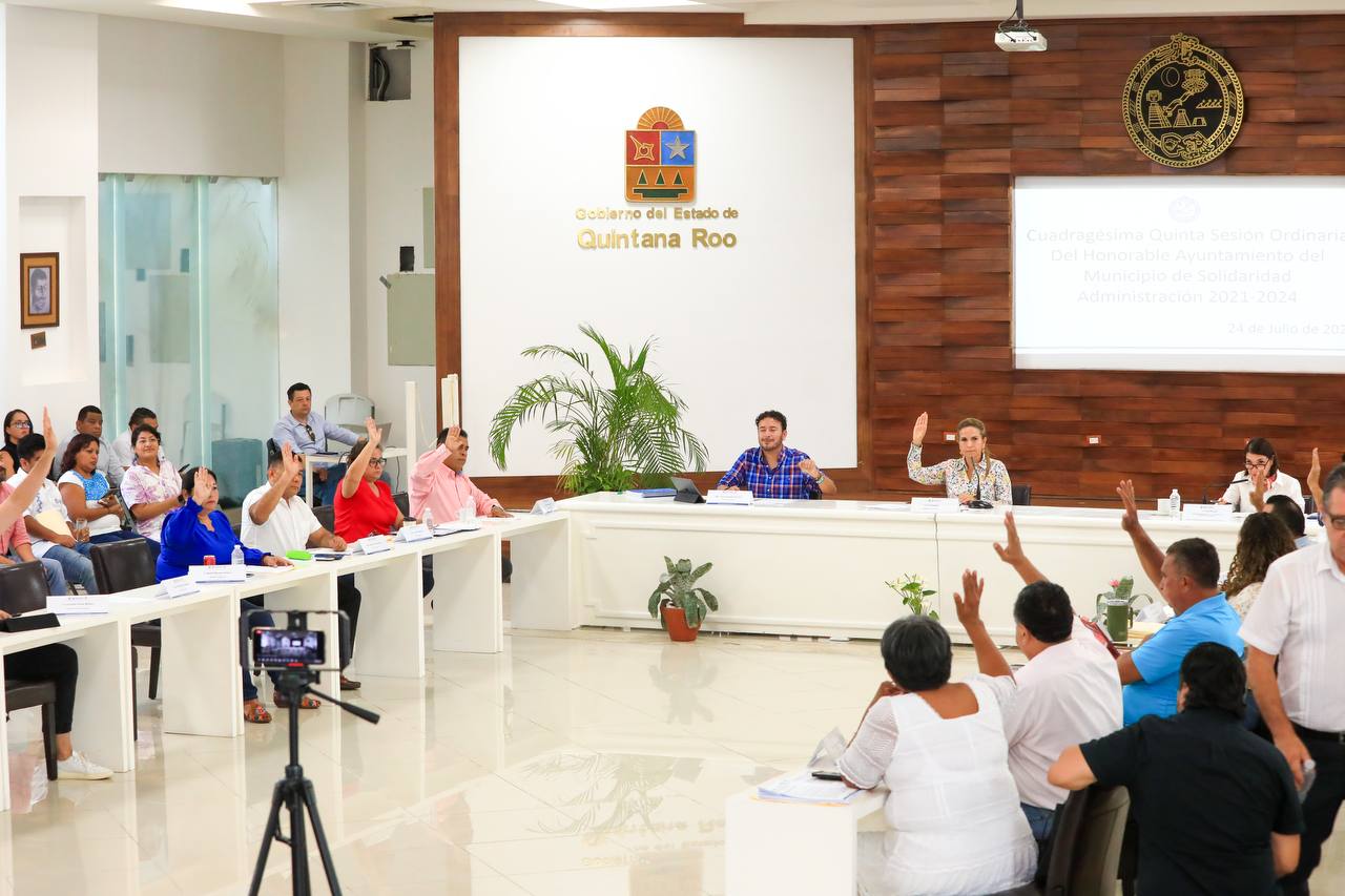 PLAYA DEL CARMEN, Quintana Roo, 25 de julio. – El Cabildo de Solidaridad, que encabeza la presidenta municipal Lili Campos, aprobó acuerdos durante la 45ª sesión ordinaria, como la ratificación de la donación realizada al Cecyte II, en administración pasada; un convenio en colaboración con el Instituto de Enfermería Ignacio Chávez, A.C., la aprobación de la Ruta Crítica para la Atención Integral de Niñas, Niños y Adolescentes del Municipio, entre otros, que benefician a solidarenses y estrechan la relación entre el sector social y el gobierno.