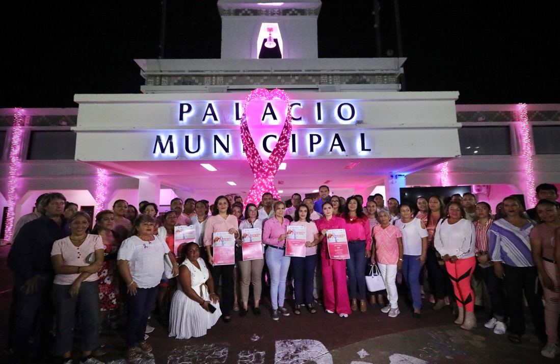 PLAYA DEL CARMEN, Quintana Roo, 07 de octubre. – El gobierno que preside Lili Campos a través del DIF Solidaridad, iluminó de luces rosas el Palacio Municipal y permanecerá así todo octubre, Mes de la Sensibilización y Concientización del Cáncer de Mama. Además, otorgará de manera gratuita 500 mastografías a quien lo requiera.