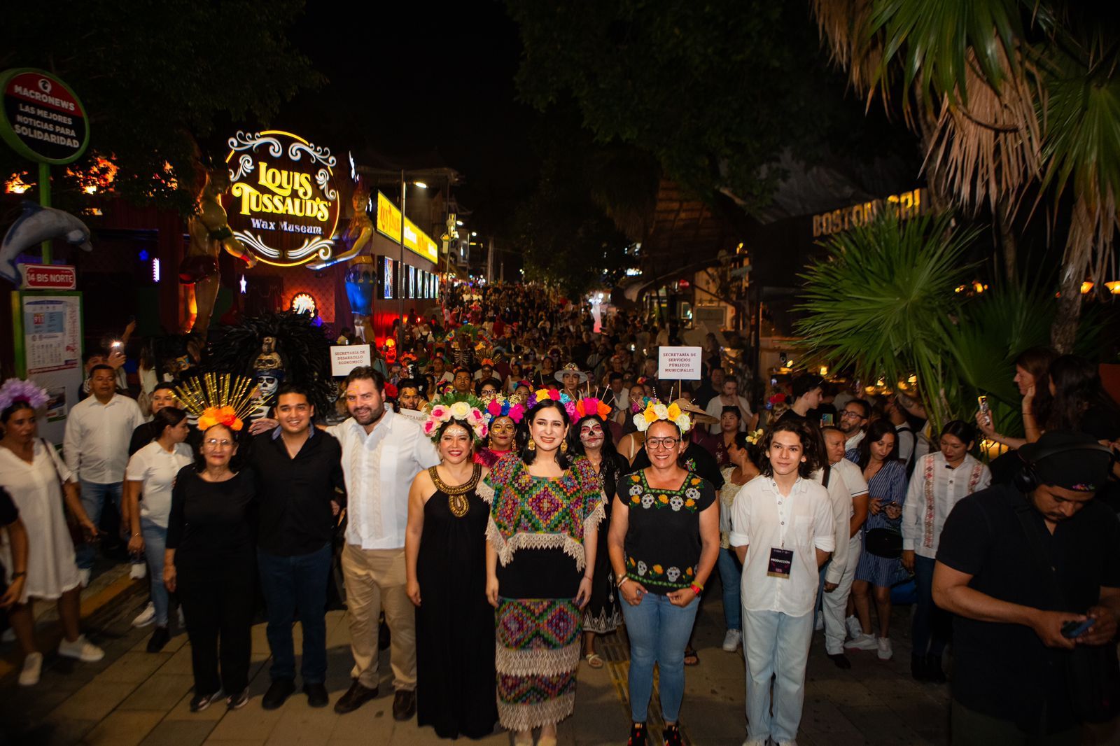 La presidenta municipal Estefanía Mercado encabezó el Desfile de los Pixanes, que partió de la avenida Constituyentes con Quinta Avenida, hasta la Plaza 28 de Julio, donde familias y turistas disfrutaron de antojitos, visitaron altares y conocieron más sobre la cultura e idiosincrasia de México, Quintana Roo y Solidaridad.