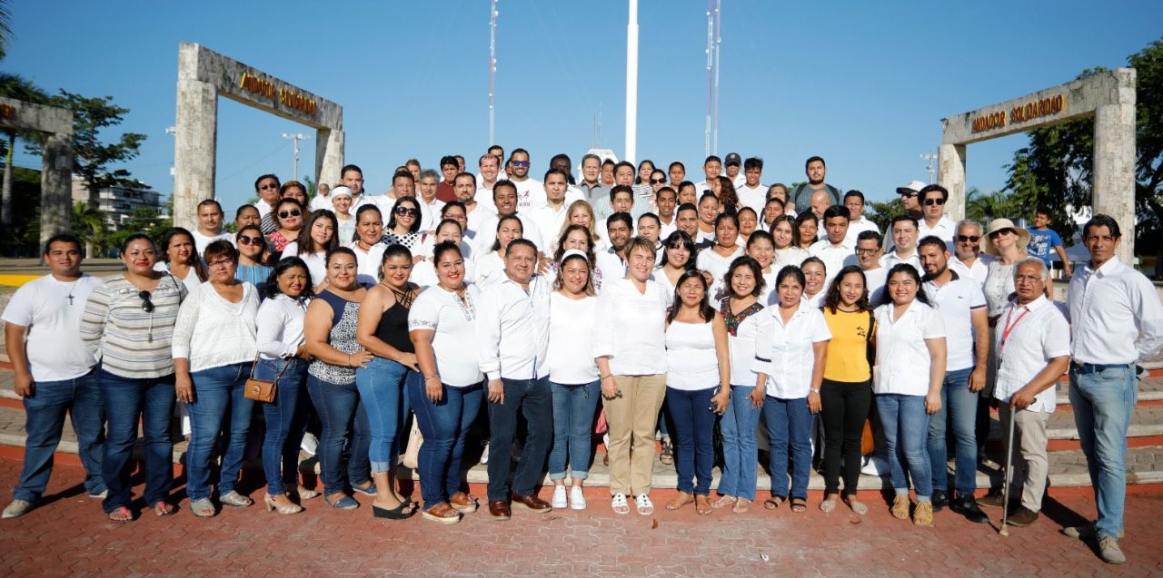 PLAYA DEL CARMEN, Quintana Roo, 1 de diciembre.- Con motivo de celebrar el presidente de la República, Andrés Manuel López Obrador un año de haber asumido el cargo, el gobierno de Solidaridad que encabeza Laura Beristain Navarrete, junto con su gabinete, cerró filas en torno del proyecto de la Cuarta Transformación, ratificando esta postura y comprometiéndose a redoblar esfuerzos a favor de los habitantes de este municipio.
