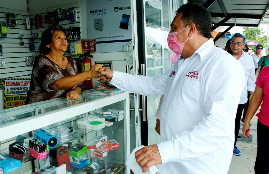 El abanderado de la Ola Rosa inició campaña minutos después de la medianoche de este lunes en Puerto Aventuras, recorrido que continuó por la mañana en el populoso fraccionamiento Villas del Sol.