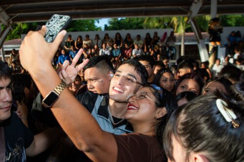 “Yo le dije a mi amigo ‘El Malilla’, mira, hoy se están graduando jóvenes muy especiales, jóvenes extraordinarios, y no puedes empezar tu concierto sin venir a saludarlos, sin venir a felicitarlos y además sin venir a tomarte la foto con ellos”, expresó la presidenta municipal al dirigirse al alumnado y sus familias.