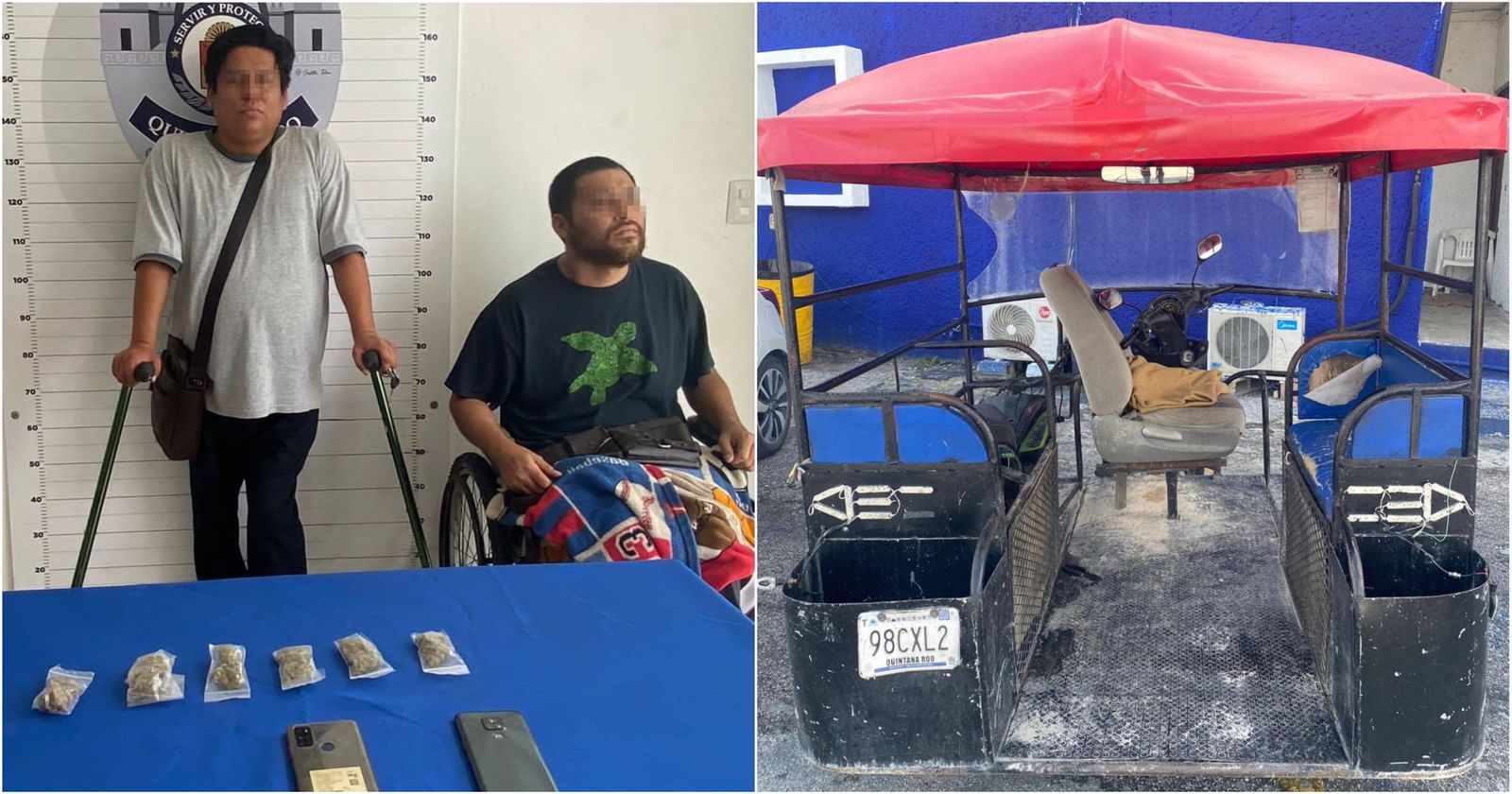 Sorprenden a dos personas con discapacidad vendiendo droga en Cancún.