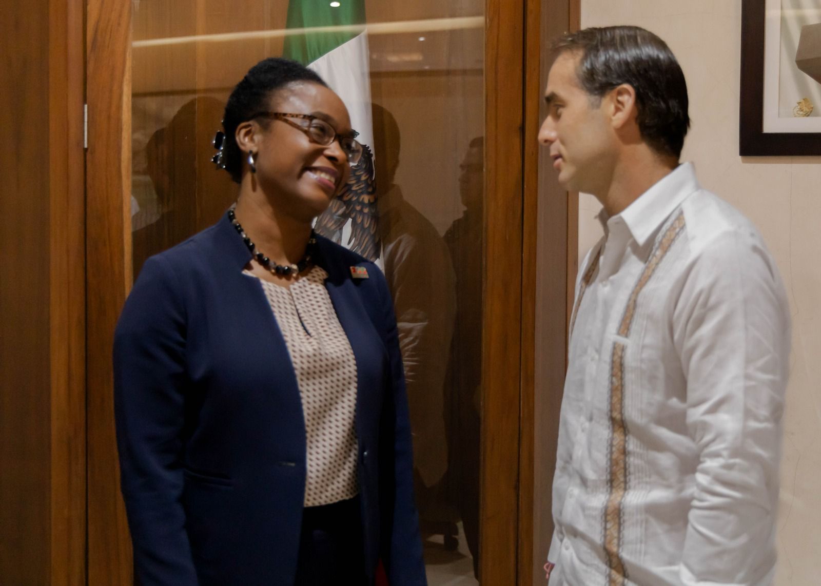 TULUM, Quintana Roo, 10 de agosto. – El presidente municipal Diego Castañón Trejo y la cónsul general de los Estados Unidos en Mérida, Dorothy Nguttter, sostuvieron este jueves una amplia reunión de trabajo y de amistad. Este encuentro de alto nivel es el primero en su tipo en el Palacio Municipal tulumnense.