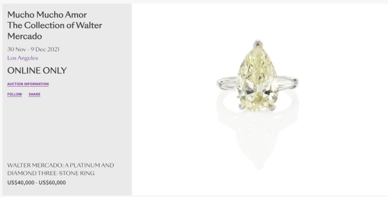 Para quienes no tengan un presupuesto tan alto se subastará también otro anillo de oro de 14 quilates con simulación de diamante con un valor estimado de entre mil y mil 500 dólares.
