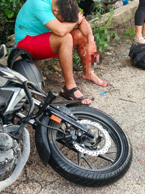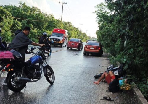 Sufre amputación parcial motociclista tras chocar contra transporte público en el Periférico de Cancún