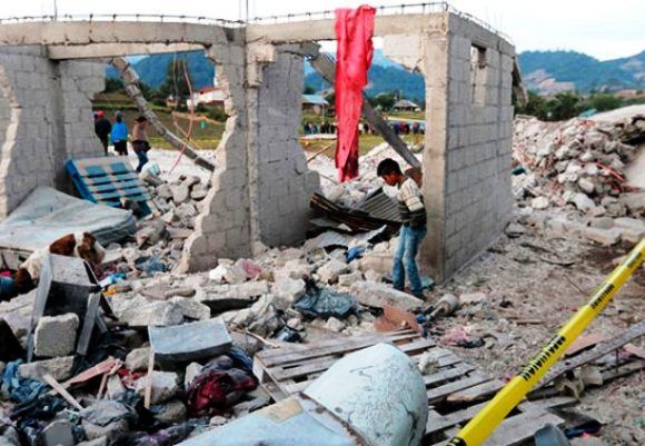 De acuerdo con vecinos de este pueblo de sólo mil habitantes, alrededor de las 21:30 horas del pasado lunes un cohete fue lanzado al cuarto que almacenaba los objetos con pólvora y provocó la explosión que dejó en escombros una vivienda de dos pisos.