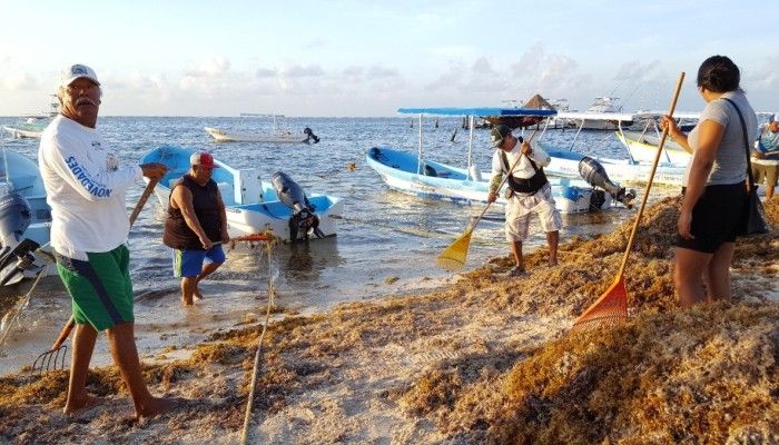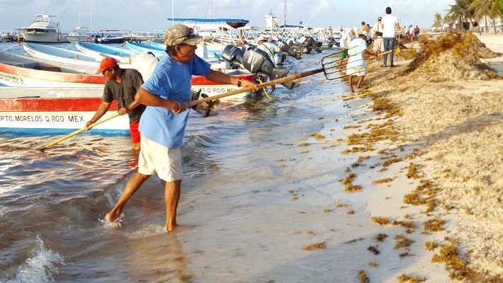 Suman fuerzas en Puerto Morelos contra el arribo se sargazo