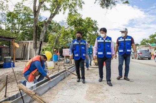 Acompañado de funcionarios municipales y encargados de las obras, recorrió la calle Osiris en donde constató el avance de los trabajos que realizan los albañiles, quienes para esta labor están cumpliendo con las indicaciones correspondientes para protegerse de un posible contagio del Coronavirus que se presenta en el municipio de Tulum.