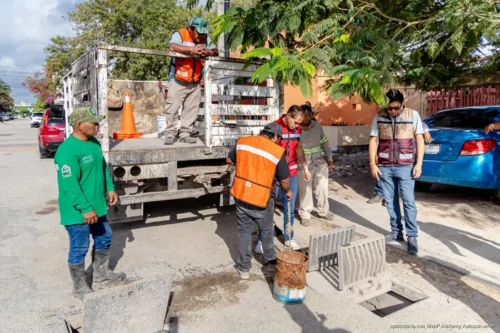 “Estamos en la colonia Tumben Kaa con una de las cuadrillas limpiando pozos de absorción. Cualquier cosa que necesiten, avísennos a través de nuestras páginas oficiales del Ayuntamiento”, expresó el presidente municipal al dialogar con vecinos de la zona.