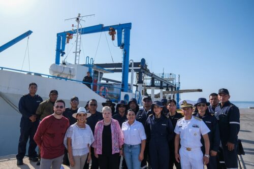 Supervisan Mara Lezama y Alicia Bárcena estrategia integral contra el sargazo a bordo del buque “Natans”