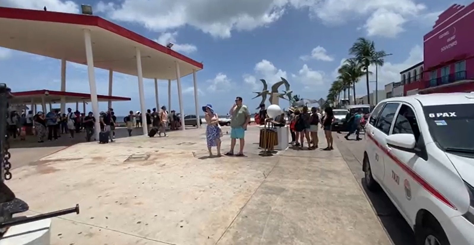 Durante un recorrido por la terminal marítima, se pudo observar el arribo de turistas nacionales e internacionales, quienes expresaron su decepción al no poder realizar actividades en el mar, a pesar de la belleza del entorno natural de la isla.