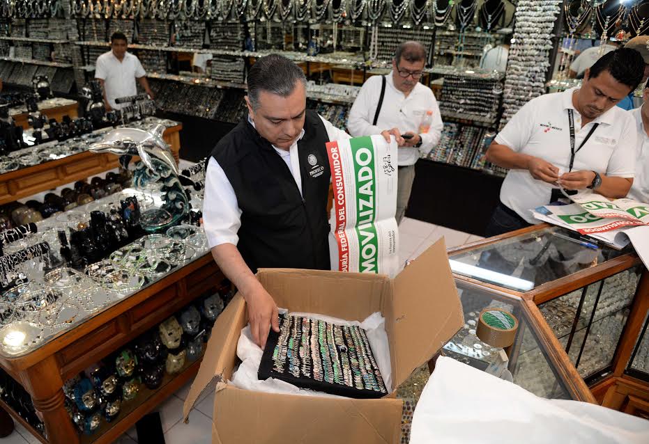 PLAYA DEL CARMEN, Quintana Roo, 16 de Junio.- La Procuraduría Federal del Consumidor inmovilizó 3,483 piezas de joyería con material plástico que se hacía pasar por ópalo, en 15 establecimientos en los que impuso sellos de suspensión de actividades por diversas irregularidades, en Playa del Carmen, Cancún y Cozumel, como parte de un operativo previo al inicio del periodo vacacional de verano.