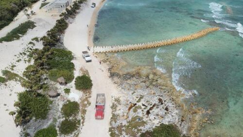 Estas obras son parte de un grupo hotelero y fueron avaladas por la Semarnat, ya en la gestión de Andrés Manuel López Obrador. Son unas escolleras que impedirían a las tortugas desovar en esta zona entre 100 y 500 nidos, de acuerdo al técnico Roberto Herrera.