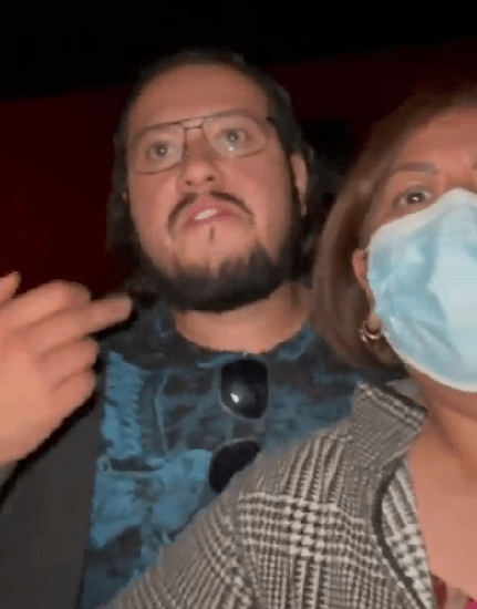 Pero lo malo no fue sólo que le agarrara la tos en pleno cine, lo que causó que alguien le reclamara de forma airada fue que no traía puesto el cubrebocas y no parecía tener intención de ponérselo.