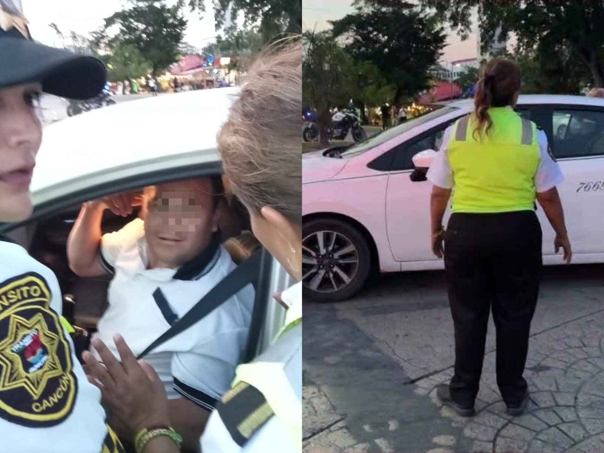 El sujeto fue detenido por oficiales de tránsito municipal, mujeres integrantes del colectivo, Tejedoras Patria Cancún, denunciaron en redes sociales que el taxista trato de cruzar a pesar de que las mujeres marchaban.
