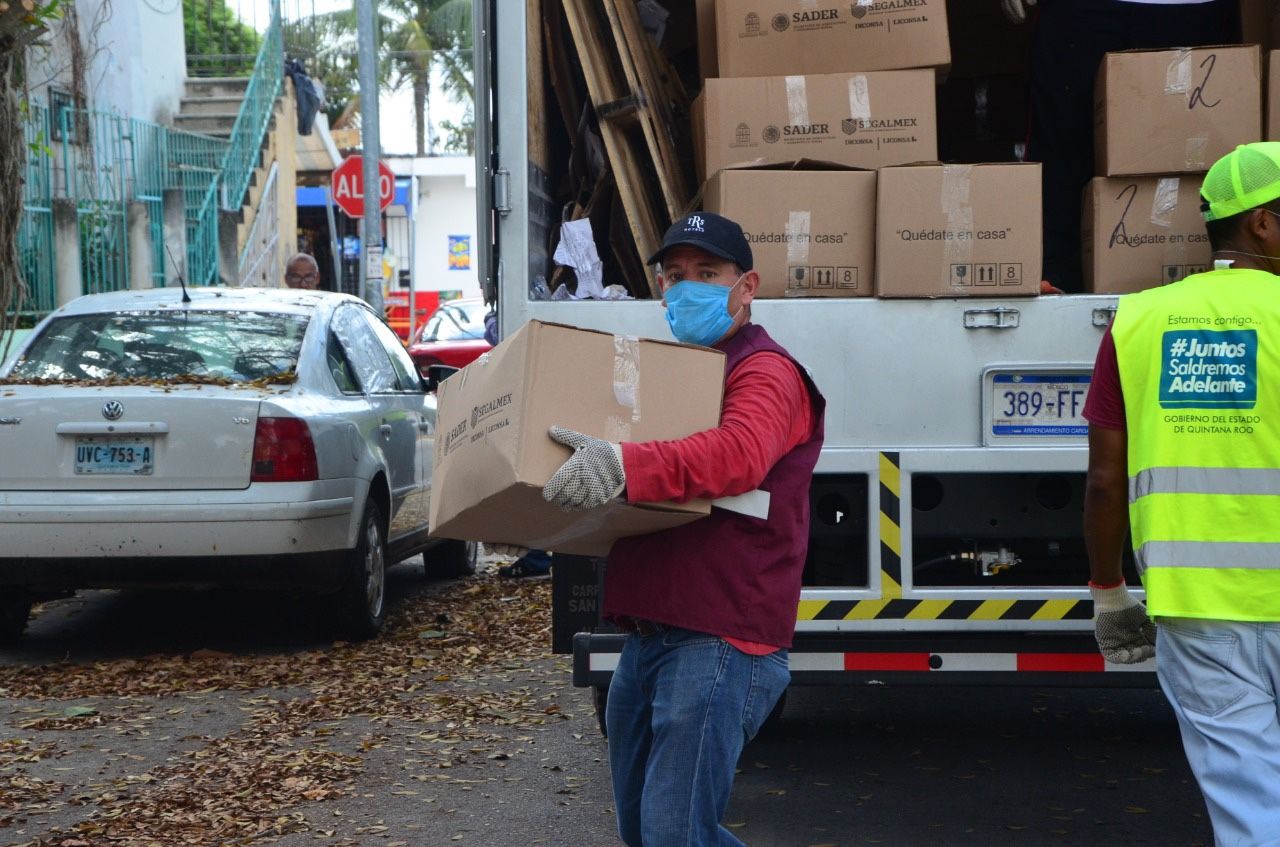 A través de brigadas, del gobierno estatal y municipal, las despensas llegan a las puertas de sus domicilios para garantizar que la gente se quede en casa y evitar la propagación del Covid-19.