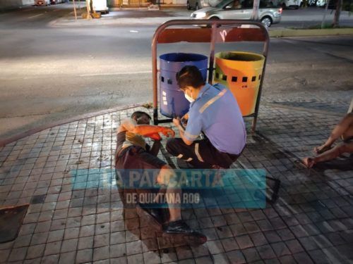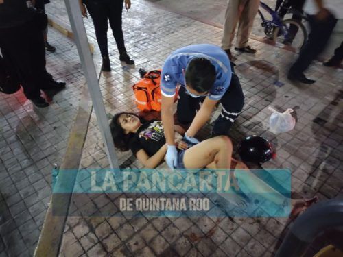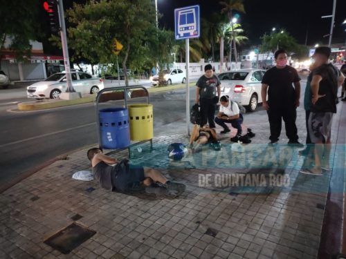 PLAYA DEL CARMEN, Quintana Roo, 24 de junio. – Tendidos sobre el pavimento acabaron dos jóvenes luego de colisionar en la noche con un vehículo particular en las inmediaciones de la colonia Centro de Playa del Carmen.